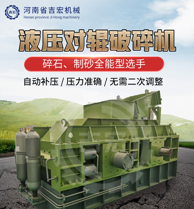對(duì)輥破碎機(jī)主要由輥輪組成、輥輪支撐軸承、壓緊和調(diào)節(jié)裝置以及驅(qū)動(dòng)裝置等部分組成。