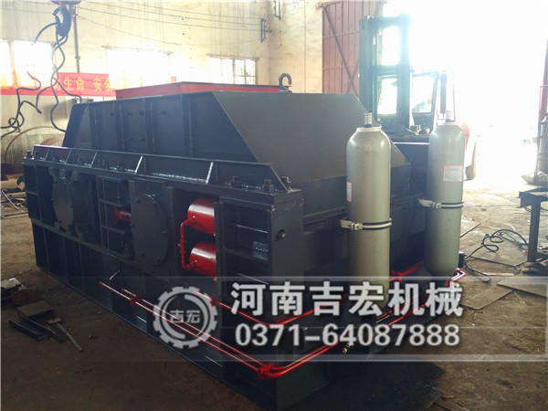 石油焦對輥破工作時,將破碎物料經(jīng)給料口落入兩輥子之間,進行擠壓破碎,成品物料自然落下。遇有過硬或不可破碎物時,其輥子可憑液壓缸或彈簧的作用自動退讓,使輥子間隙增大,過硬或不可破碎物落下,從而保護機器不受損壞。相向轉(zhuǎn)動的兩輥子有一定的間隙,改變間隙,即可控制產(chǎn)品排料粒度。