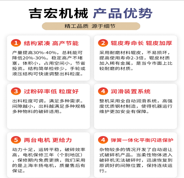 對(duì)輥破碎機(jī)主要用于礦石粒度小于80mm的細(xì)碎作業(yè)。具有體積小、破碎比大、噪聲低、結(jié)構(gòu)簡(jiǎn)單及維修方便的優(yōu)點(diǎn),被破碎物料粒度均勻,過粉碎率低,成品粒度在0.5-40mm。該輥式破碎機(jī)適用于水泥、化工、電力、冶金、建材、耐火材料、石灰石等中等硬度材料,以及爐渣、焦炭、煤炭和其他材料碎片的破碎作業(yè)。